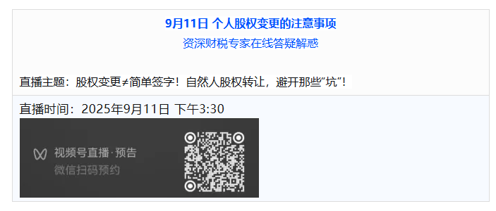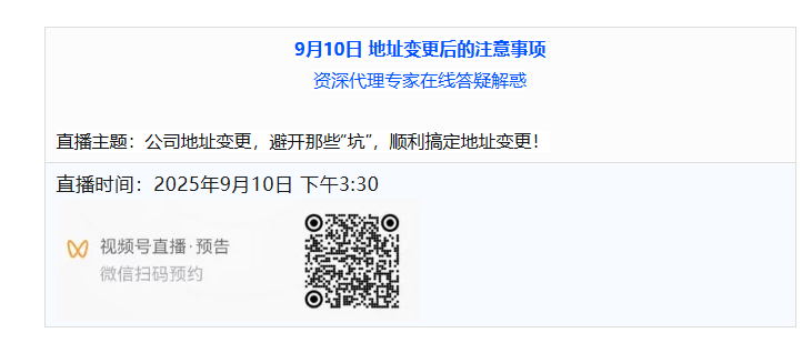 二場(chǎng)直播分別著力解決您的工商地址變更,自然人股東股權(quán)轉(zhuǎn)讓的關(guān)鍵問(wèn)題。歡迎您的收看。